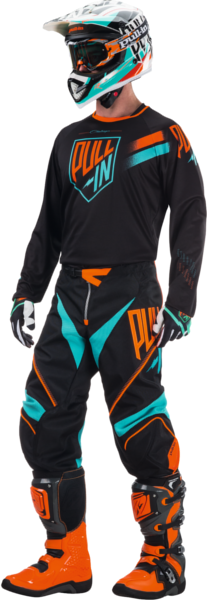 Maillot cross Pull In Challenger Noir Vert Orange en matière : 100% Polyester respirant. Coupe ajustée. Manches coupe raglan. Col extensible facilitant le port d’une protection cervicale. Finition stretch aux poignets.